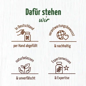 Die Produktentwicklungsqualität ist der höchste Anspruch, daher wird jeder einzelne Rohstoff von jeder einzelnen Produktionscharge von einem unabhängigen deutschen Labor geprüft. Bei den Kapseln handelt es sich selbstverständlich um vegane Kapseln, die frei von Trennmitteln, Aromen, Farbstoffen, Stabilisatoren, Konservierungsstoffen und Gelatine sind.
