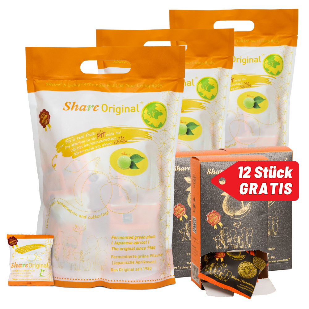 Die ShareOriginal® Pflaumen werden nachhaltig in einem geschützten Anbaugebiet in Südostasien kultiviert. Jede Frucht wird sorgfältig geerntet, fermentiert und einzeln luftdicht verpackt, um die Qualität und Frische zu bewahren.